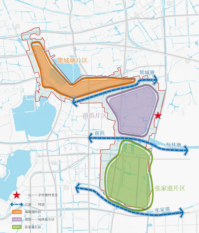 三片:雉城塘(現(xiàn)代高效農業(yè)發(fā)展區(qū))、前浜(綜合配套服務區(qū))、張家港三片主題功能區(qū)(城郊型特色文旅體驗區(qū))。