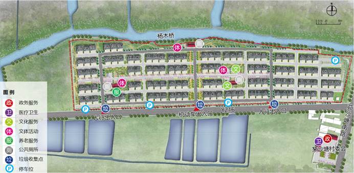 本次規(guī)劃方案主要涉及東楊木橋1個移并點,規(guī)劃滿足范圍內搬遷撤并的需求,并建設綜合服務中心、健身活動廣場等配套設施滿足群眾需求。