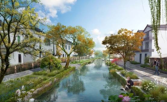 使用具有鄉(xiāng)土及地方特色的標(biāo)志性構(gòu)筑物、植物等元素,突出村莊特色融入江南傳統(tǒng)元素,塑造傳統(tǒng)與現(xiàn)代結(jié)合的整體形象。