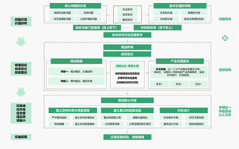 規劃從農業、生態、建設等方面入手,發現村莊問題,研判發展價值,評價龍鳳村發展潛力;落實上位規劃,統籌多元主體,協調各類空間矛盾,堅持問題導向與目標導向相結合,提煉村莊發展策略,強化保障措施,最終形成可實施的一張藍圖。
