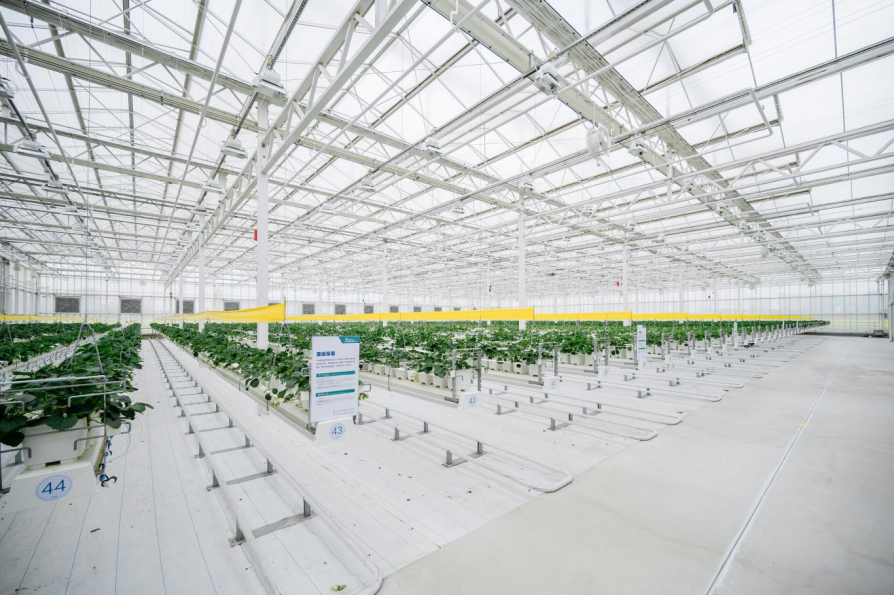 A+ Greenhouse spans over 3 hectares and features an advanced 18,800-square-meter intelligent greenhouse. Carefully selecting high-quality varieties from domestic and foreign leading research institutions, the workshop specializes in cultivating strawberries, tomatoes, cucumbers, leafy vegetables, and more. It is equipped with state-of-the-art seedling nurseries and automated packaging areas. Sixty percent of the facilities are outfitted with top-tier equipment from countries like the Netherlands and Israel, incorporating cutting-edge Internet of Things (IoT) technologies to regulate environmental factors such as light, temperature, humidity, and perform steps like automated irrigation and pest control. This ensures crops thrive in optimal conditions, enhancing both production efficiency and product quality. The workshop exemplifies an intelligent, integrated industry chain model, encompassing everything from seed selection and seedling cultivation to production management, post-harvest packaging, and marketing. It serves as a research and demonstration hub for innovative modern facility horticulture.