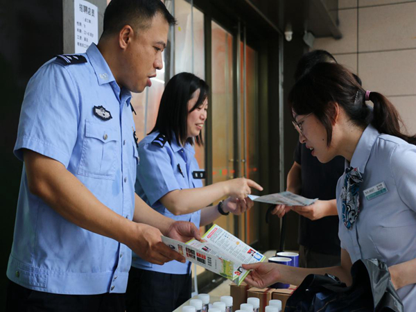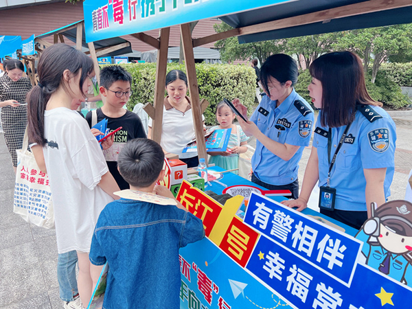 在社區宣傳欄等醒目位置張貼禁毒宣傳海報,增加群眾對毒品的認識,提高群眾識毒、防毒、拒毒能力和舉報非法種植、主動參與禁毒的責任、意識;同時,民警輔警還社工、志愿者們還積極走進商超廣場等人員密集區域開展“送法上門”活動,普及禁毒知識及法律法規,現場講解新型毒品的偽裝與危害,并通過設置“禁毒知識大比拼”有獎挑戰等互動活動,將禁毒知識融入趣味競賽...