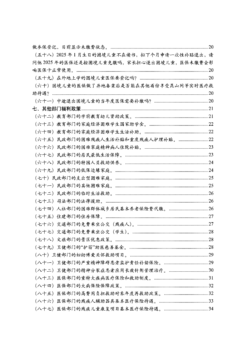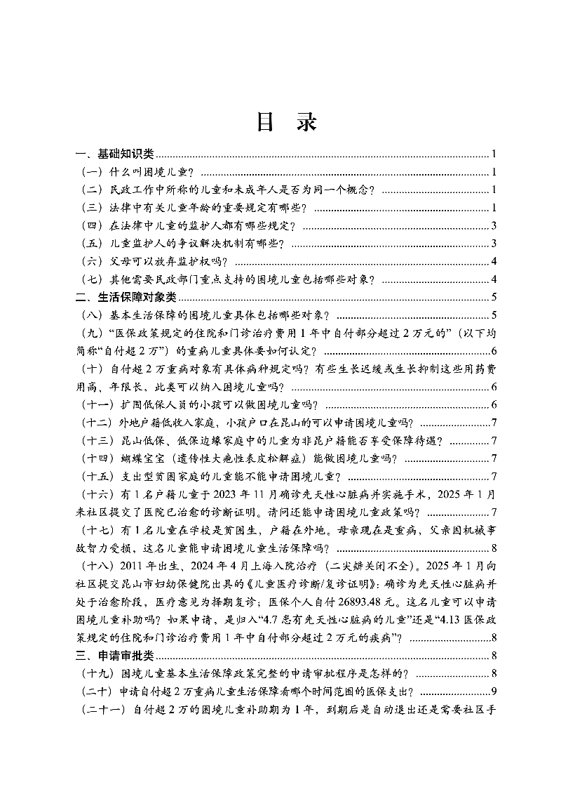 基層工作千頭萬緒,現實環境下的復雜問題層出不窮,為保障兒童和殘疾人等特殊弱勢群體的基本權益,輔助基層應對各類卡點、痛點和難點問題,市民政局結合換位跑工作要求,開發“兒童與殘疾人福利政策百問百答”線上即時回應表單,在兒童主任基礎輪訓工作中捕捉基層普遍困惑,匯集重點相關部門的福利政策,研發制作《昆山市2025年兒童福利政策百問百答》《昆山市2025年殘疾人福利政策百問百答》。