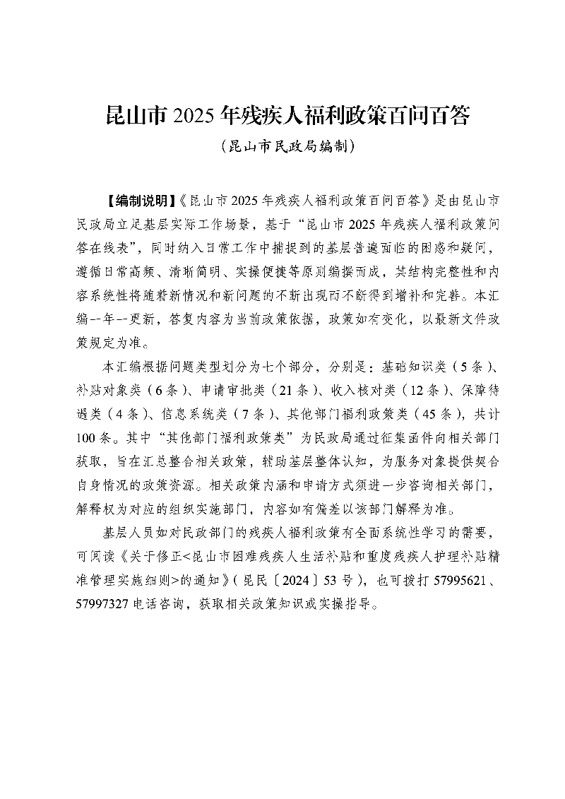 昆山市2025年殘疾人福利政策百問百答