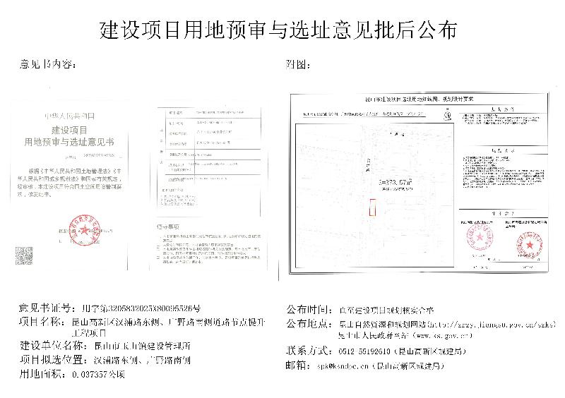 昆山高新區(qū)漢浦路東側(cè)、廣野路南側(cè)道路節(jié)點(diǎn)提升工程項(xiàng)目建設(shè)項(xiàng)目用地預(yù)審與選址意見