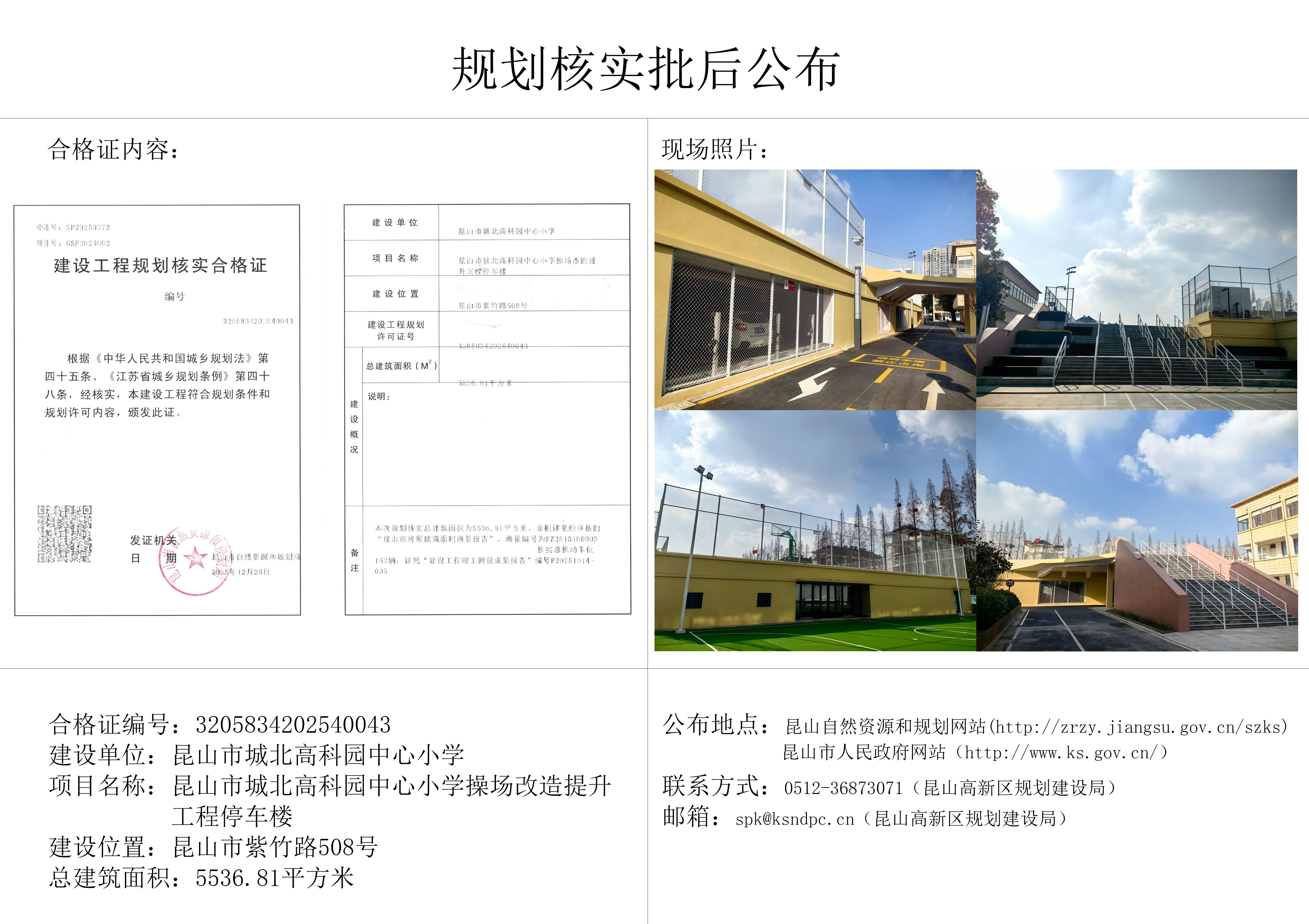 昆山市城北高科園中心小學操場改造提升工程停車樓
