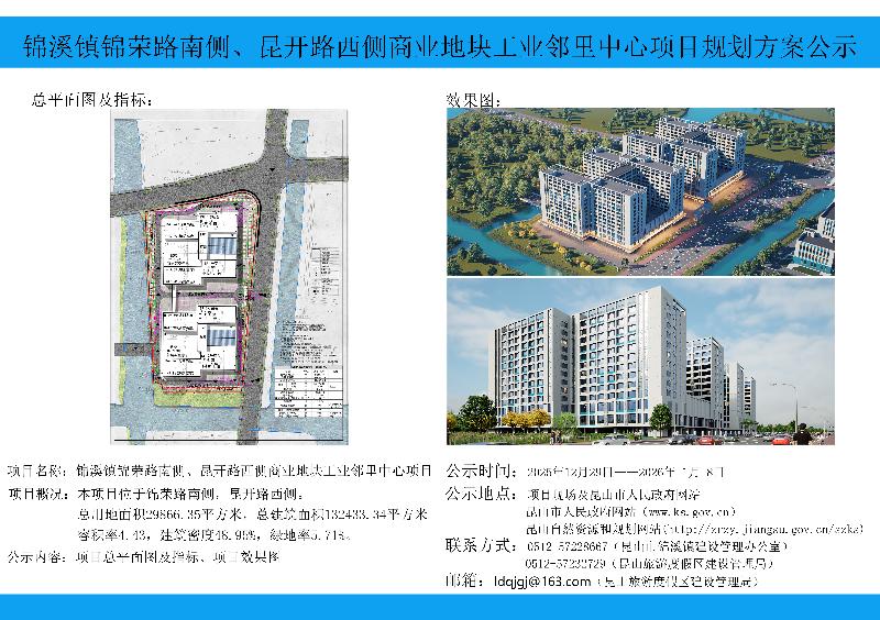 錦溪鎮錦榮路南側、昆開路西側商業地塊工業鄰里中心項目規劃方案批前公示