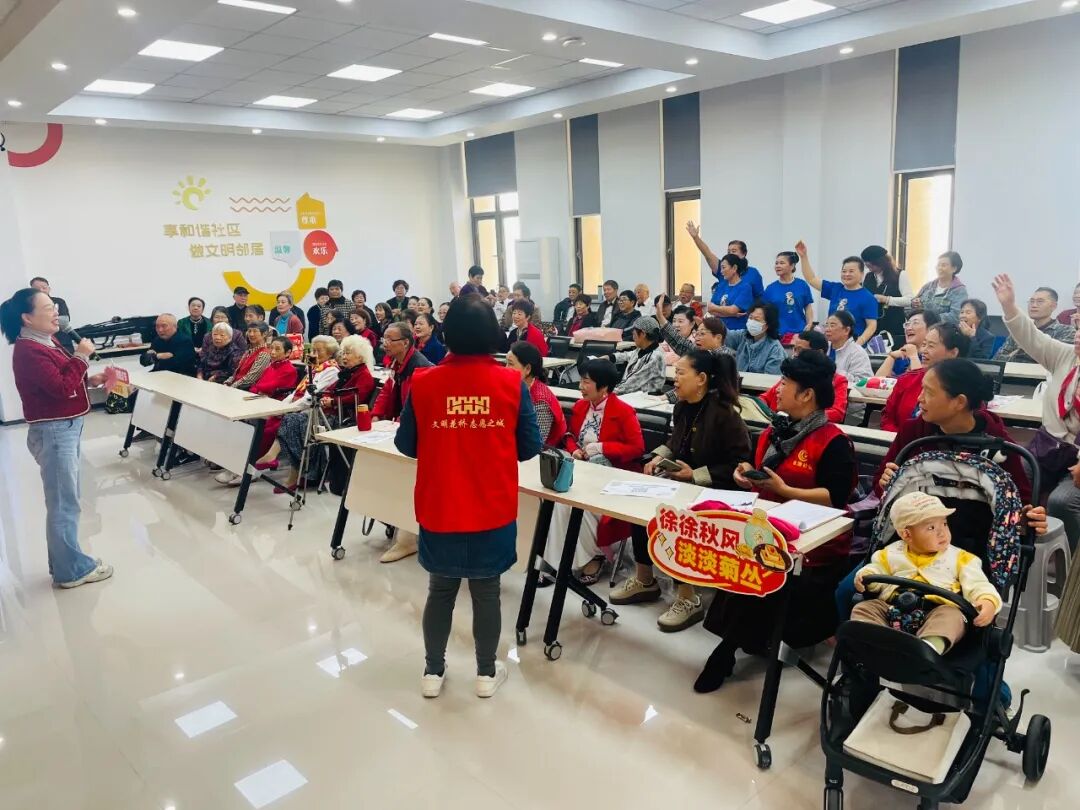 從清晨的太極晨練到傍晚的合唱排練,從餐前的柔力球運動到飯后的橋牌書畫怡情,橫漕社區綜合為老服務中心的投用催生各類文藝團隊的蓬勃生長。不過,歡喜之余也有小遺憾——活動室數量充足,但缺乏專業化的展示平臺。為此,橫漕社區經走訪調研、居民商議,盤活五樓閑置空間打造“拾光”小劇場,寓意“拾取舊日光陰,照亮當下舞臺”。如今,劇場每逢佳節便上演老人自編自導的短劇、合唱等節目,端午誦詩、中秋賞曲、重陽獻戲等活動輪番開展,文化傳承與現代表達在此交融,社區的老年居民們也在聚光燈下重新詮釋著“老有所樂”的豐富內涵。