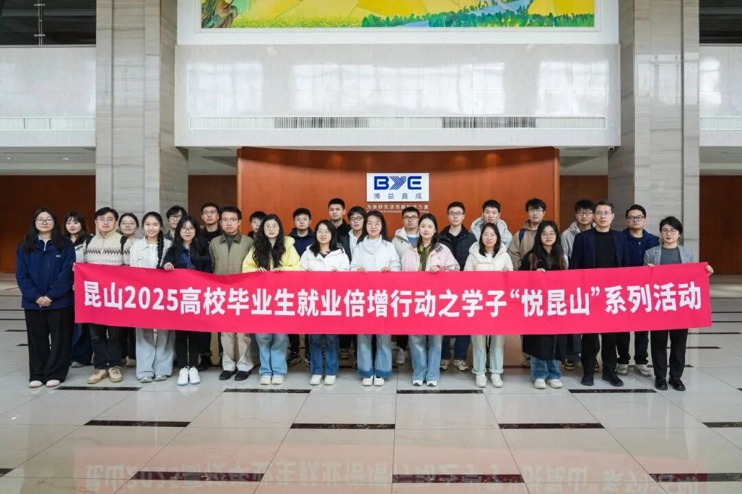 為全面落實蘇州市“百萬人才新增計劃”,精準鏈接高校人才資源,吸引更多畢業生來昆就業創業,今年以來,市人社局持續深化與高校的聯動協作,精心組織開展“學子‘悅昆山’”系列活動。11月21日至23日,天津大學就業指導中心副主任周冉帶隊,三十余名師生代表走進昆山,深入重點企業與產業園區,通過實地參訪、深度交流,近距離感受昆山的產業實力、就業環境和引才誠意。