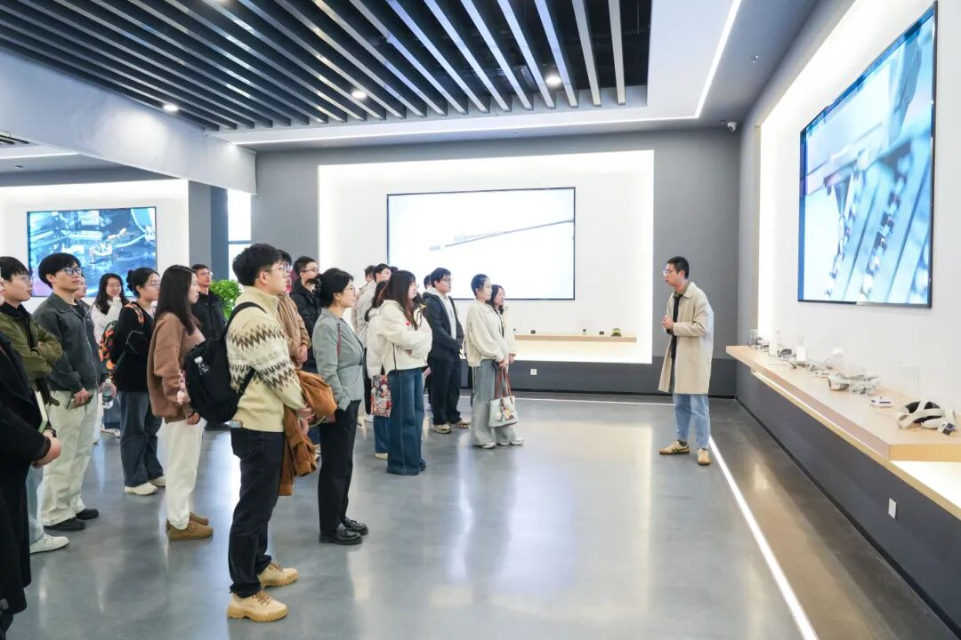 在昆山丘鈦微電子科技股份有限公司,同學們觀摩了高端攝像頭模組研發生產線,了解到企業在智能制造、機器視覺等領域的創新成果,并與HR就人才需求與職業成長路徑展開深入交流。