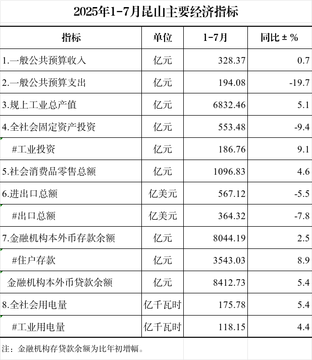 2025年1-7月昆山主要經(jīng)濟(jì)指標(biāo)