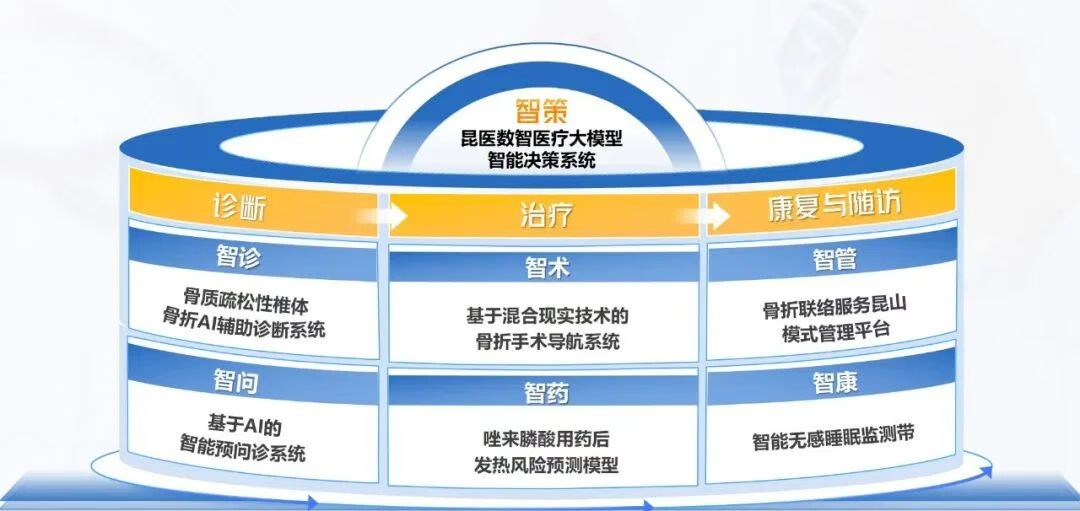 在醫(yī)療健康賽道,昆山市第一人民醫(yī)院聯(lián)合上海脊影慧智能科技有限公司、廣州國家實驗室、昆山市中醫(yī)醫(yī)院申報“‘昆醫(yī)數(shù)智醫(yī)療大模型’賦能老年人群骨健康管理”項目。該項目通過強化醫(yī)療大數(shù)據(jù)與人工智能的深度融合,精準破解老年骨骼疾病“診療不足、管理脫節(jié)、負擔沉重”等核心難題,構建起覆蓋全生命周期的智慧健康管理新模式。