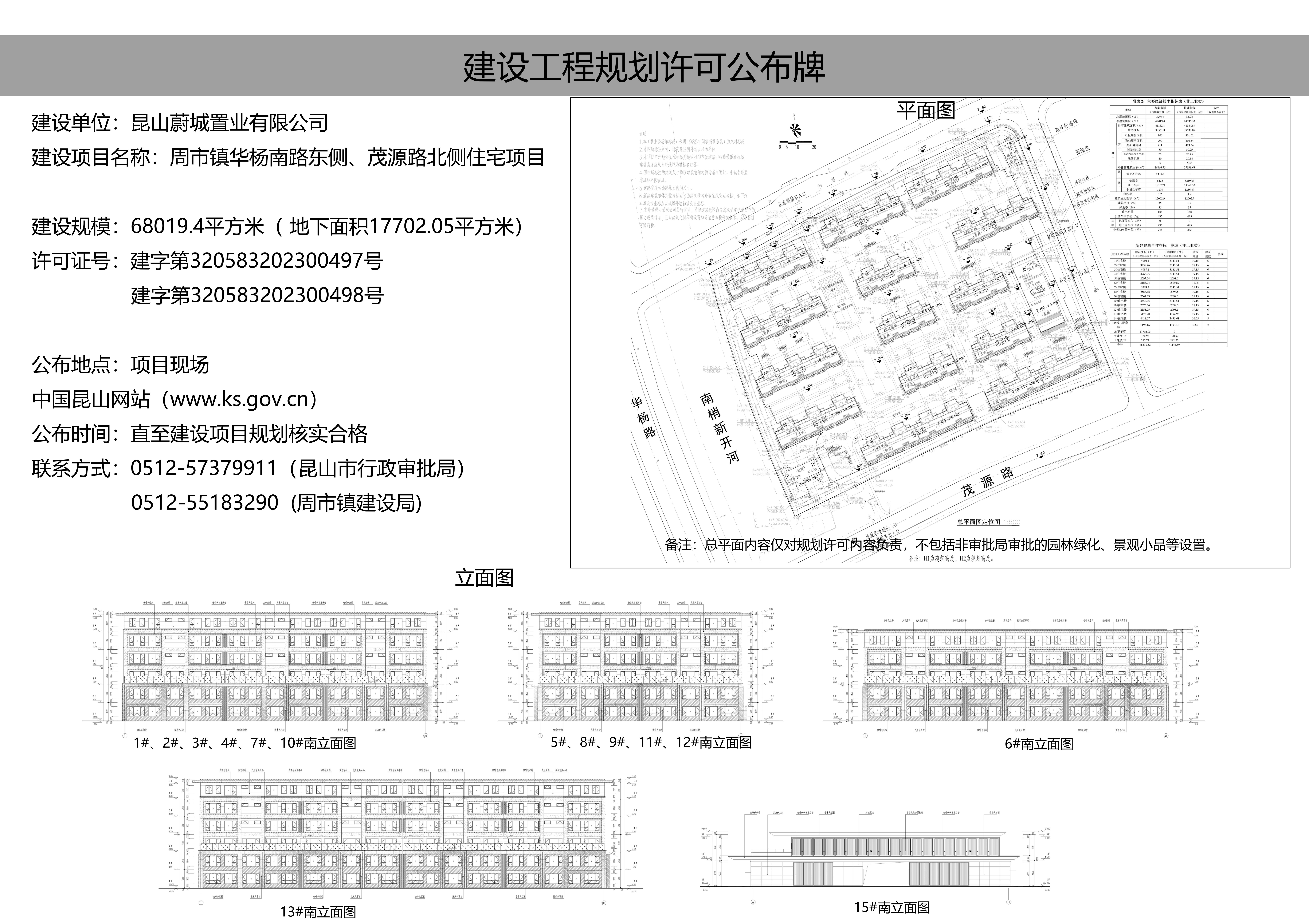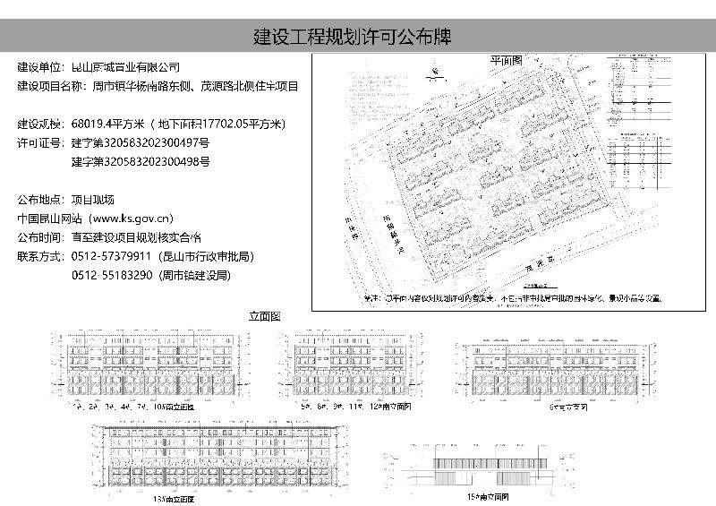 周市鎮(zhèn)華楊南路東側(cè)、茂源路北側(cè)住宅用房項(xiàng)目建設(shè)工程規(guī)劃許可公布牌